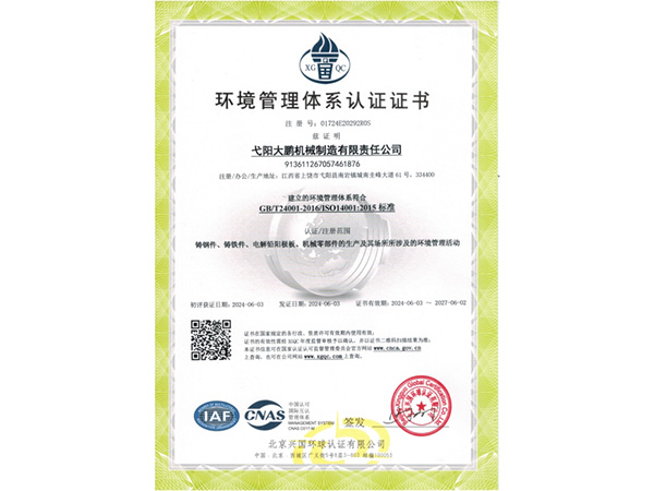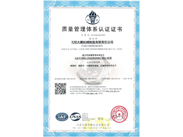 • 09-28弋陽大鵬機(jī)械制造有限責(zé)任公司成功取得規(guī)范